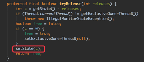 这是lock方法的实现,我们可以看到 如果线程通过CAS state进入临界区,那么在进入临界区前的一步操作便是一个具有volatile读写语义的操作。